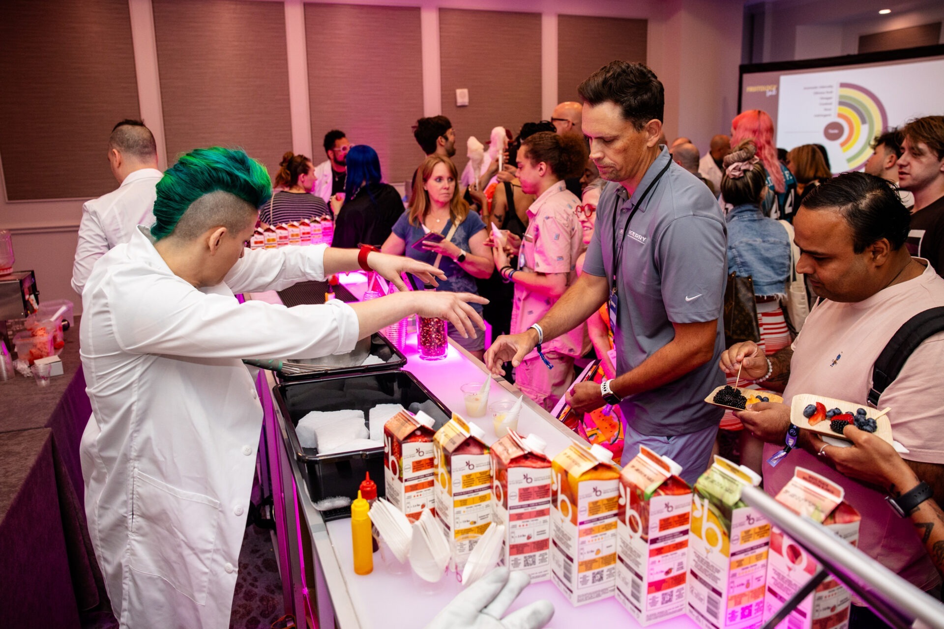 The Fruitology® Science Lab invited beverage professionals from around the world to sample a variety of fruit purees in unqiue and interesting molecular mixology applications, showcasing techniques such as freezing with dry ice, dehydration, carbonation, and clarification to highlight the authentic essence of fruit in cocktails and mocktails.