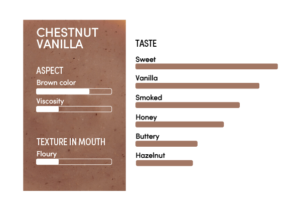 The sweet Chestnut & Vanilla puree from Les vergers Boiron is made from chestnuts grown in Spain, Portugal, Italy, and France, combined with vanilla from Madagascar.