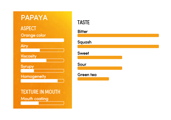 The papaya puree from Les vergers Boiron is made from papayas grown in India, known for their sweetness and aromatic richness.