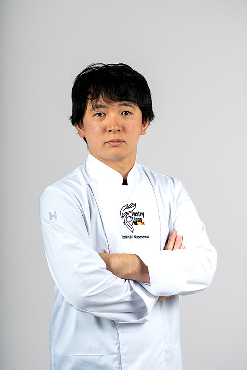 Originally from Japan, Yoshiyuki Numasawa is the sugar master of the Belgian Pastry Lions team. He began his career in Tokyo, working in renowned pastry shops such as Dalloyau, before continuing his journey in Belgium at the Sasakiyasushi pastry and chocolate shop. In 2015, he permanently moved to Belgium to develop his art and passion for refined pastry.