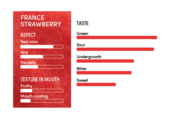 Our Strawberry Cléry puree has a bright crimson red color, characteristic of the variety. Its semi-thick texture and subtly frothy mouthfeel provide a sensation of deep lightness.