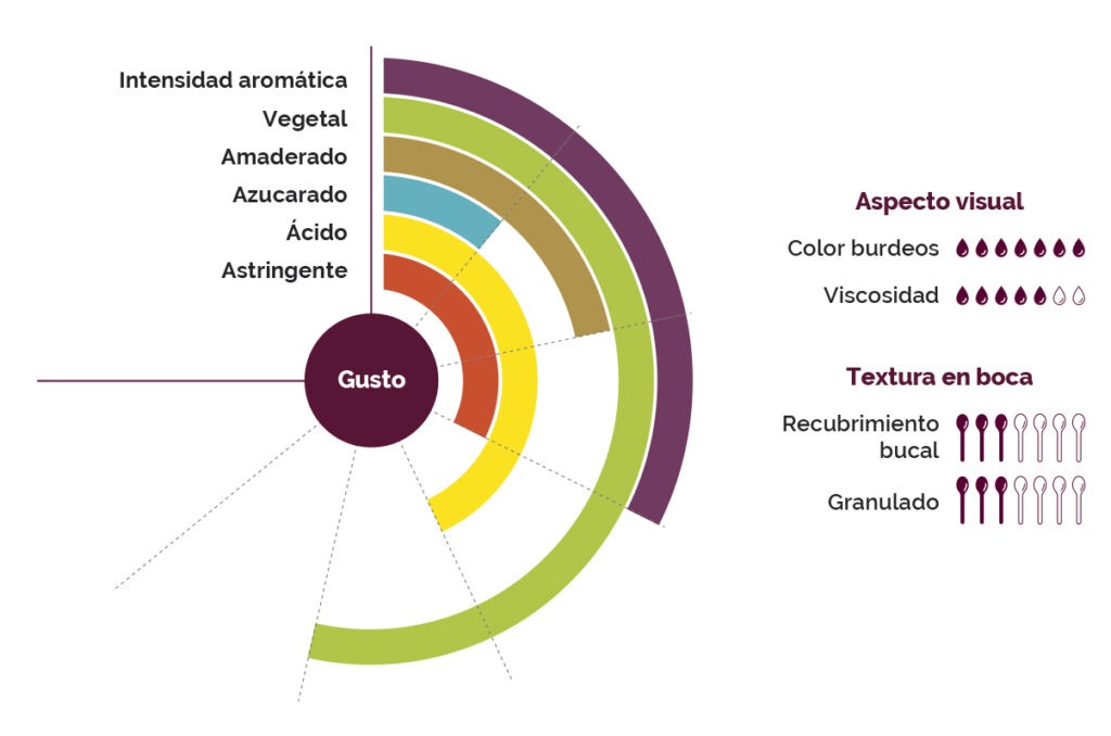 Los arandanos s1lvestres proporc1onan al producto su color profundo, casi negro, con matices burdeos.