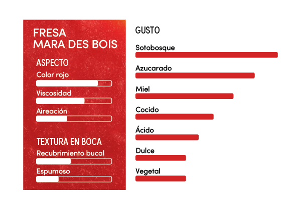 El puré de fresas Mara des Bois de Les vergers Boiron se elabora a partir de fresas de la variedad Mara des Bois cultivadas en Francia y Portugal.