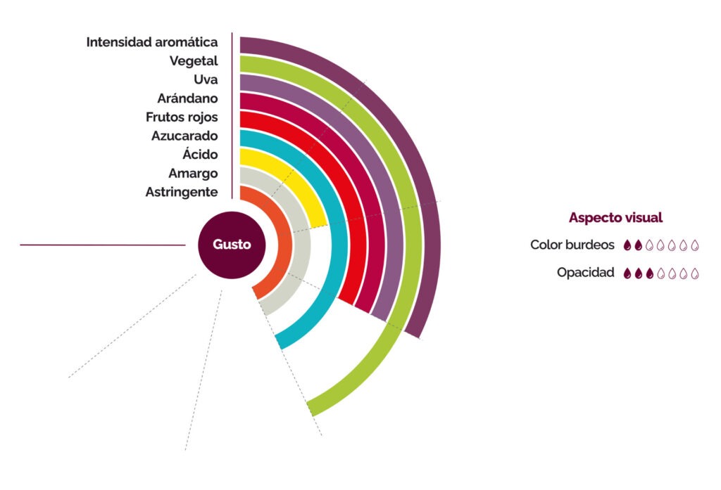 La mezcla de las variedades Wonderful y Mollar ofrece un equilibrio aromático único. La intensidad de la granada Wonderful se suaviza con la dulzura de la variedad Mollar, con notas vegetales y afrutadas de frutos rojos, uvas y arándanos.