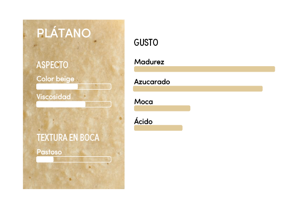 La perfecta madurez de las frutas seleccionadas le confiere un sabor naturalmente dulce y notas aromáticas de moca. Debido a la presencia de almidón, la textura de este puré puede parecer pegajosa y harinosa.