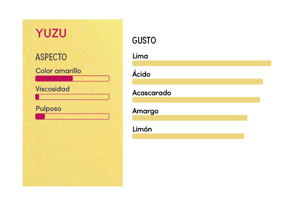 El puré de yuzu tiene un zumo amarillo claro, con una pulpa muy fina.