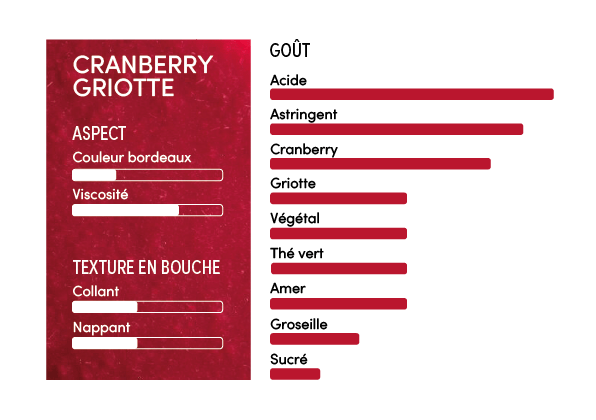 La purée de cranberry griotte Les vergers Boiron est réalisée à partir d’un assemblage de cranberries cultivées au Canada et de griottes en provenance de Serbie.