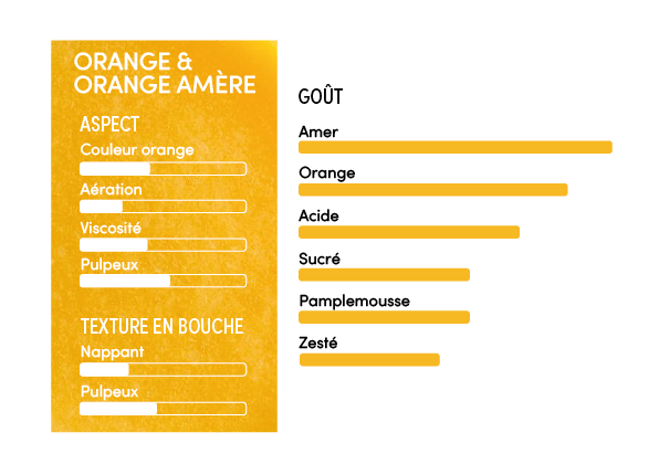 Orange (orange entière, jus et jus concentré) : 85%, orange amère 15%.
