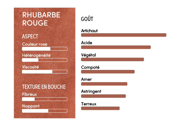 Sa texture lisse, peu fibreuse et parfaitement équilibrée met en valeur toute la richesse gustative de la rhubarbe, sans excès d’acidité.