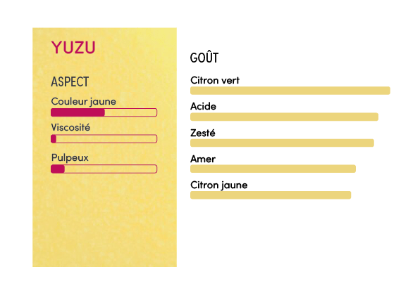 La purée de Yuzu est un jus jaune clair, avec une pulpe très fine.
